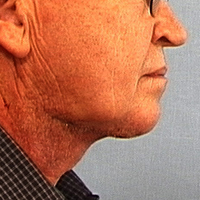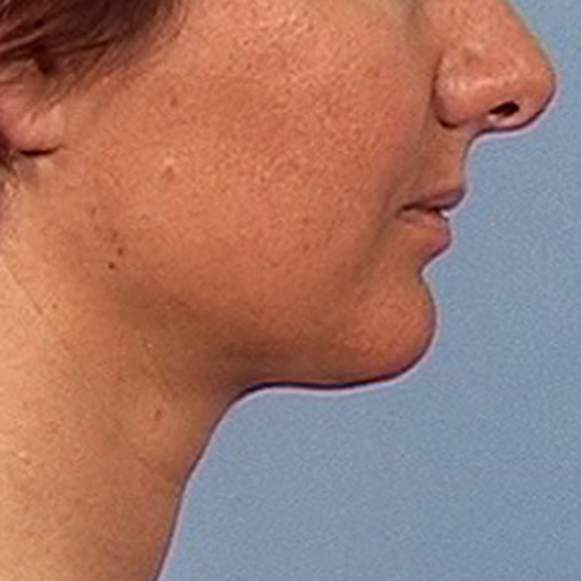 samt indsættelse af et hageimplantat, kom patienten til at se