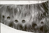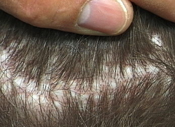 Hårene skal fjernes fra nakken, og derfor vil der altid blive et ar efter operationen. I gamle dage, dvs. for indtil 1995, var det almindeligt at fjerne hårene som runde hudøer på ca. 4 mm i diameter. Hullerne voksede sammen i løbet af ca. 8 dage, og der kom et ar for hver hudø, der var blevet fjernet. Da hullerne blev lavet med indbyrdes god afstand, og der voksede hår rundt om arrene, kunne det tilbageværende hår skjule arret.