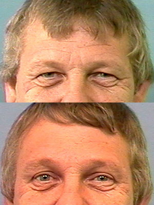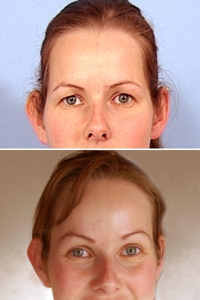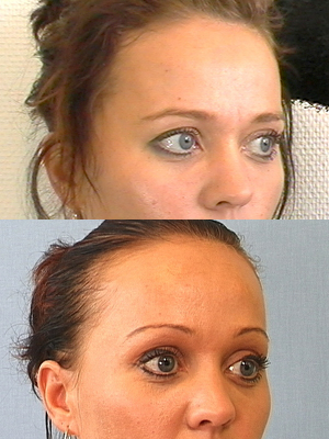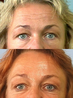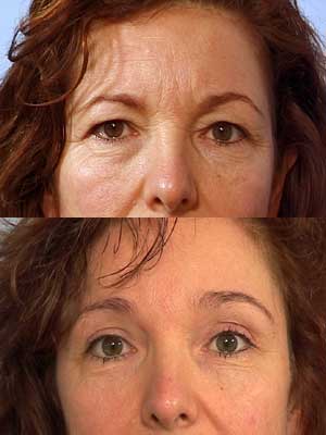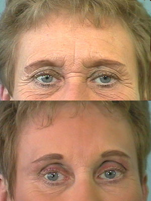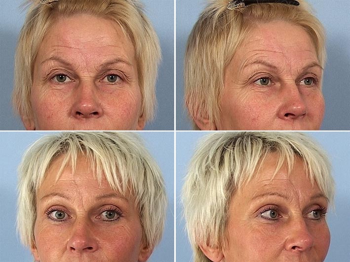 Patienten har samtidig med pandeløftet fået fjernet overskydende hud og fedt fra de øverste øjenlåg." rel="folio">