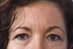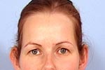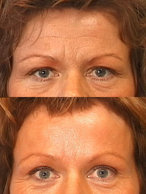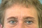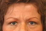 Patienten har samtidig med pandeløftet fået fjernet overskydende hud og fedt fra de øverste øjenbryn." rel="folio">
