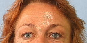 Øjenbrynene sidder flot ca. e cm over knoglekanten. Panderynkerne er væsentligt reduceret!